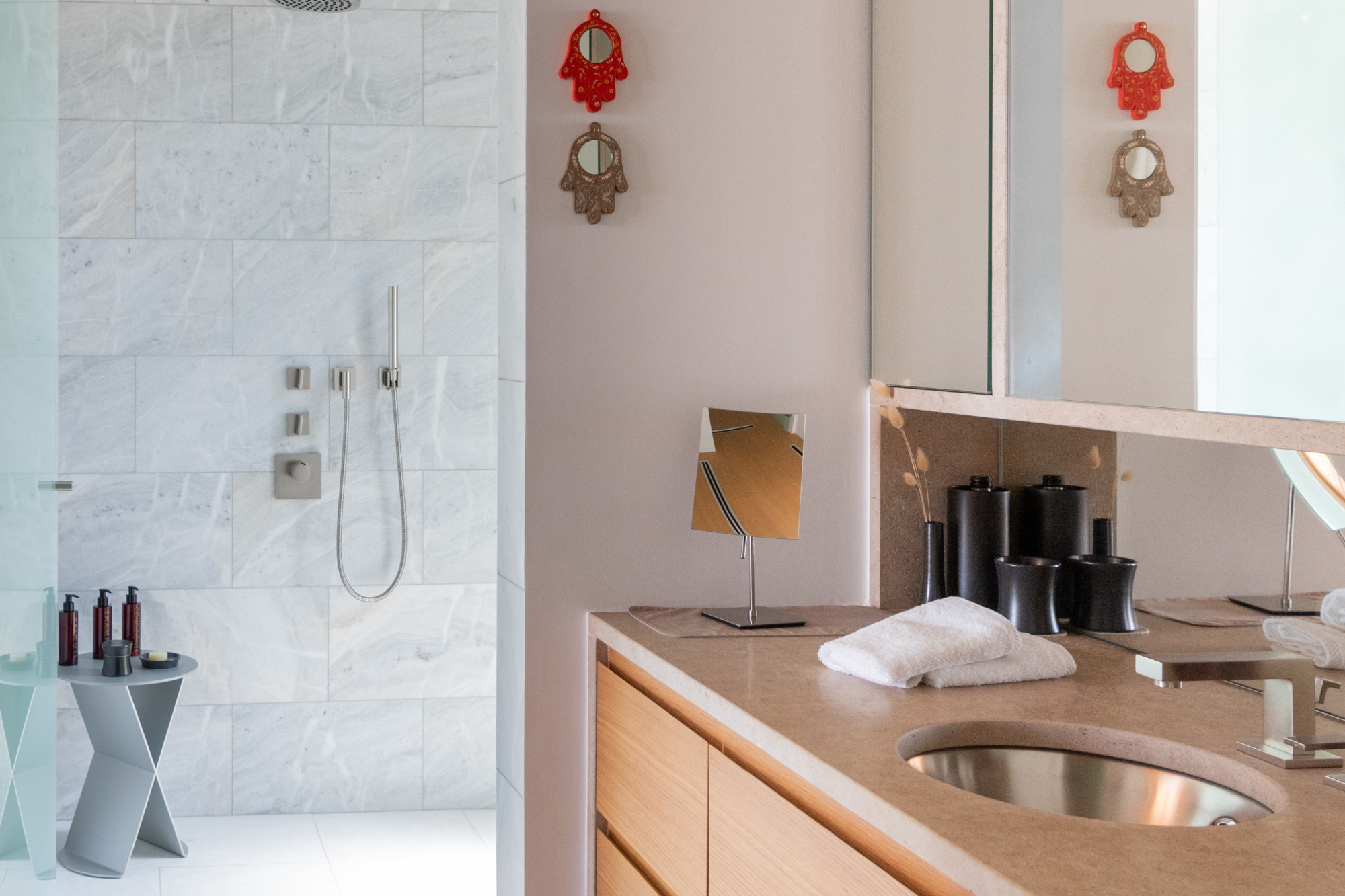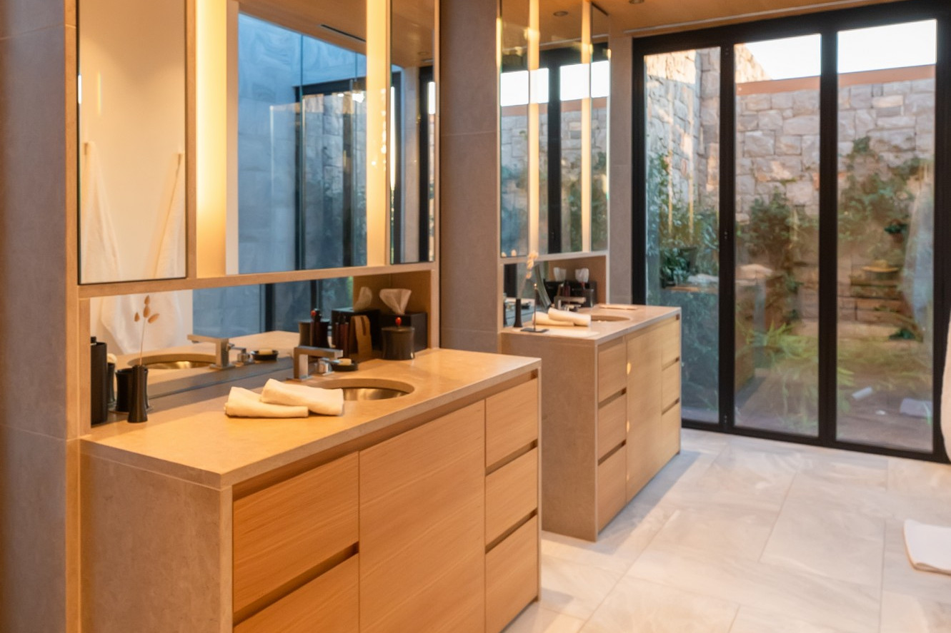 The construction was done with high-quality materials such as Silver Cloud type marbles, Rajastan verde, and Sinai, wooden linings and constructions from oak, and stone masonry linings from local stones. There are also cooling and heating systems as well as an underfloor heating system.