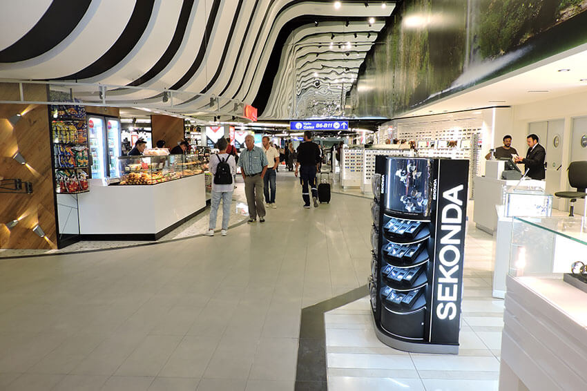 The shops within the terminal building occupy an area of approximately 2,200 sq m, with new modern duty-free shops with special decoration (new floors, wooden panels, LED lighting, new air conditioners, etc.), 6 new renovated food outlets in departures and two in the check-in areas.
