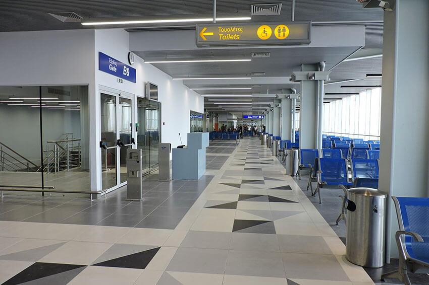 A new departures area of 3,000 sq m was created and at the same time the remaining 8,000 sq m of the old area was renovated, with the creation of 11 exits with separate elevators (9 exits on the ground floor and 2 on the first floor). In addition, two lounges were created in the extra Schengen area and two in the intra Schengen area. At the same time, the image improvement in the commercial part of the airport is also noticeable.