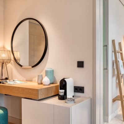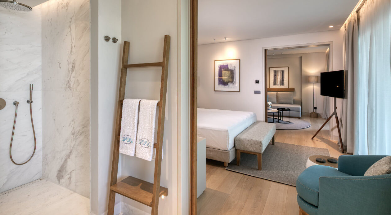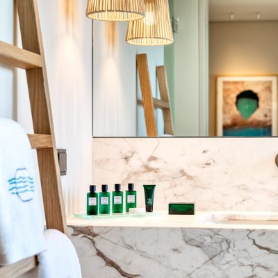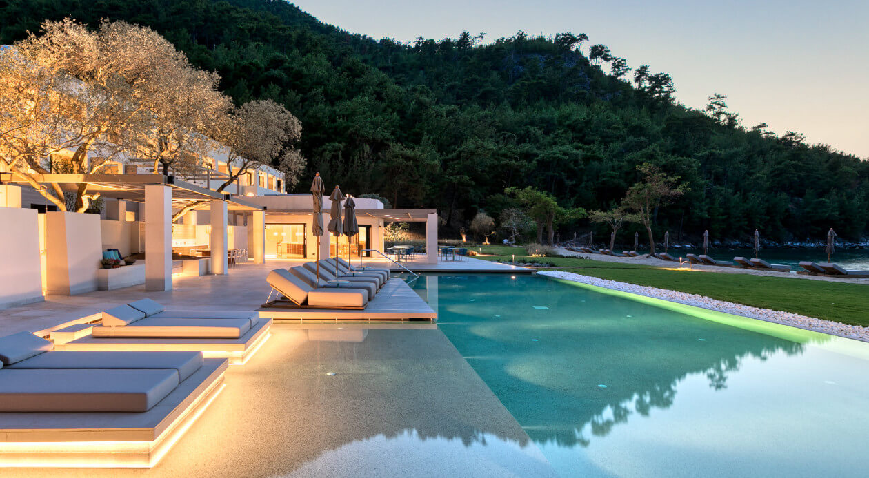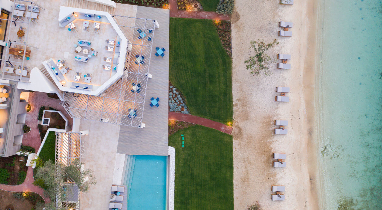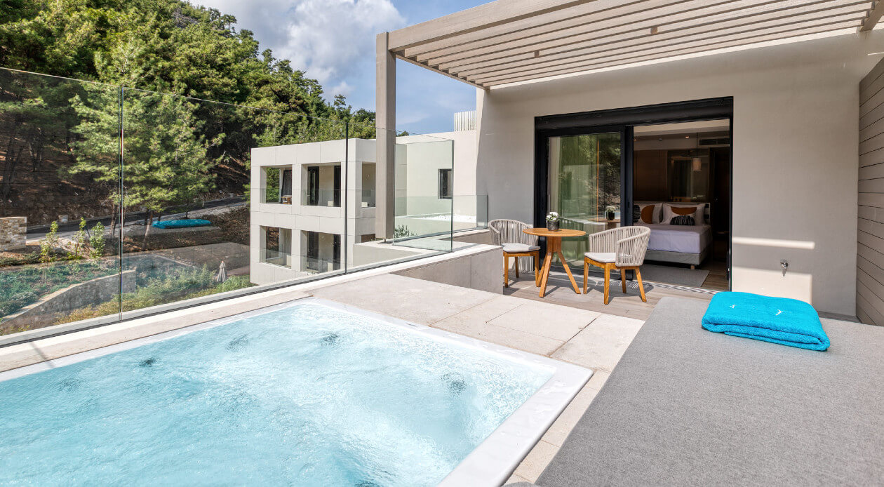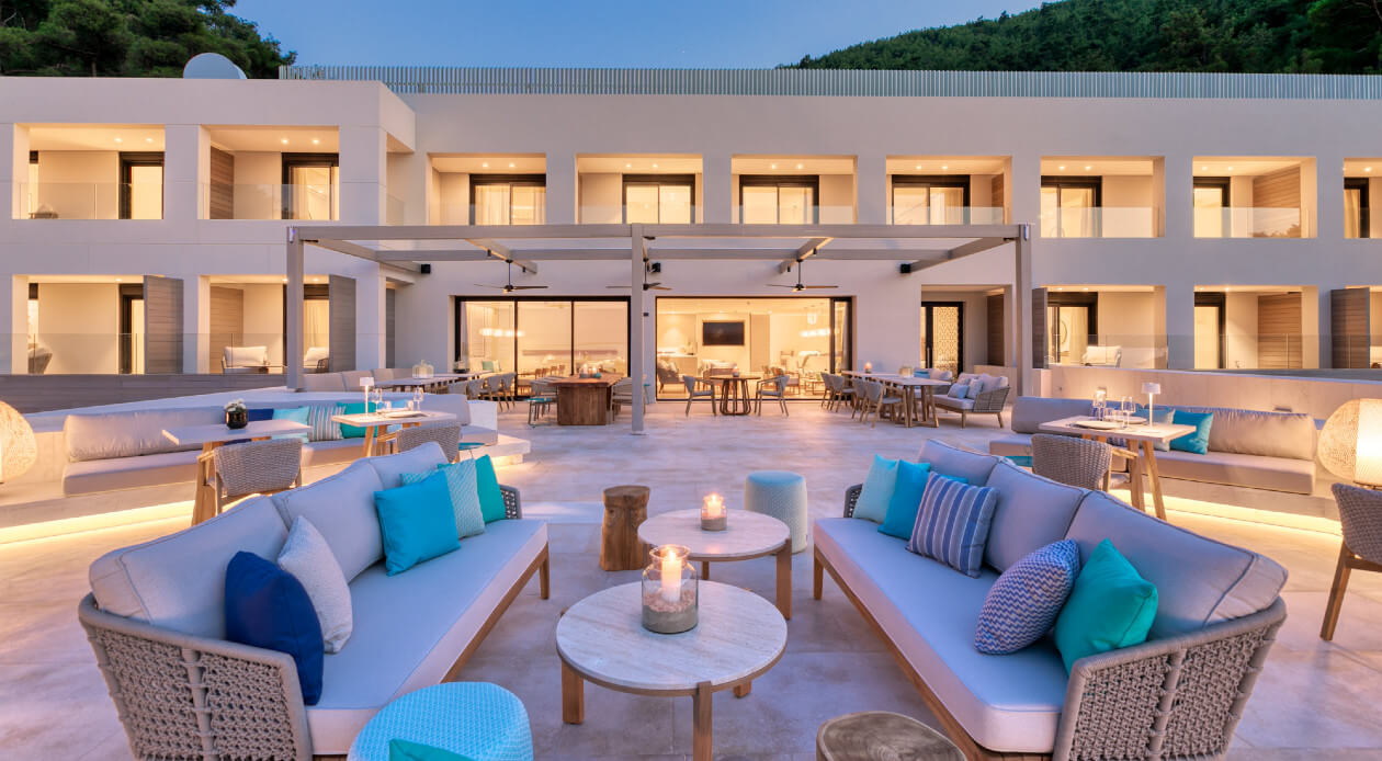 The project involves interior arrangements, modification of facades, addition of galleries and projecting roof, landscaping and construction of swimming pools in an existing building, to be transformed into a 5-star hotel, in a land parcel outside town planning, at Vathi, Port of Thassos, in the municipality of Thassos, Regional Unit of Kavala. The hotel offers year-round accommodation with a capacity of 57 beds - 30 keys.